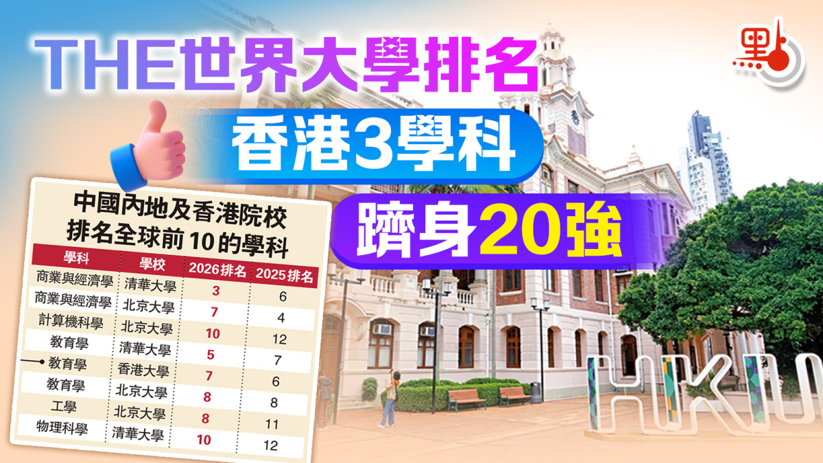 2026年泰晤士高等教育世界大学学科排名日前揭晓。香港院校方面,港大教育学继续成为最高排名学科,位列全球第7位。全港共有3个学科跻身全球前20强 ,21个学科打入50强,41个学科居百强 。